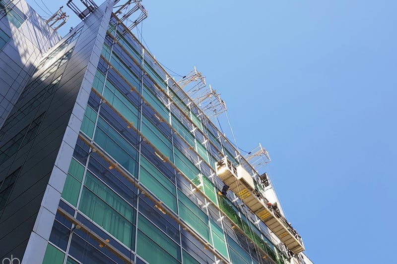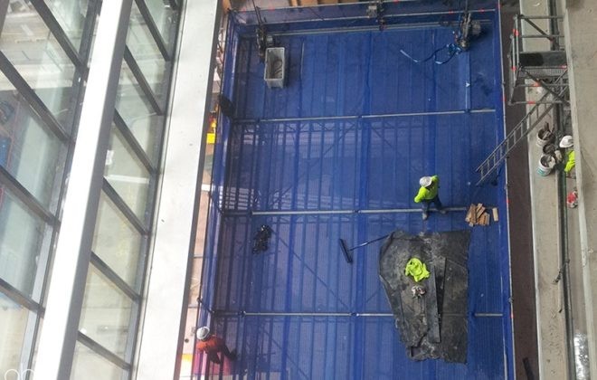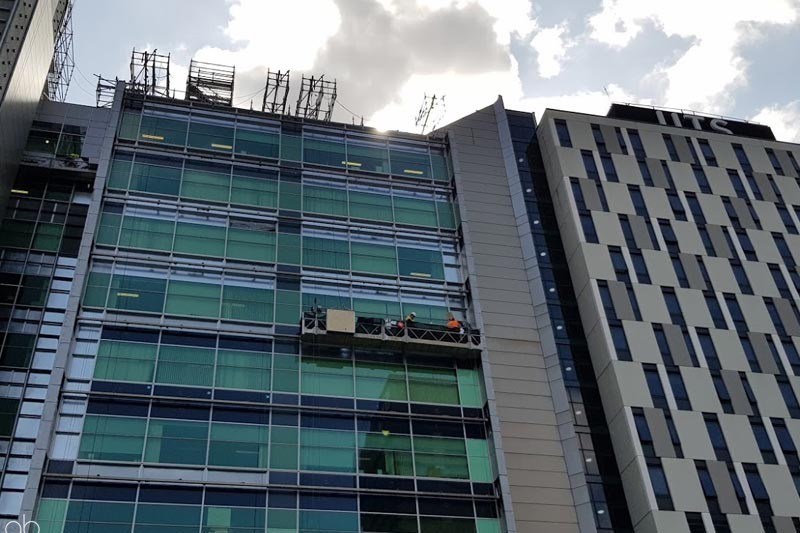 Complete access package including a Large-scale overhead protection throughout the Atrium. Suspended scaffolding & Swinging stages covered the external façade.