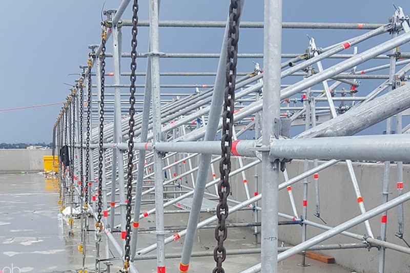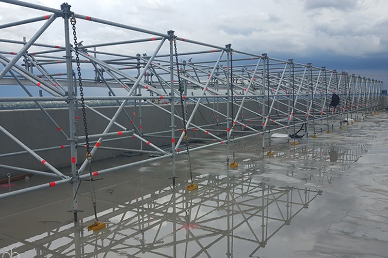 BRIEF: Swinging Stagesfor Cladding replacement FEATURES: Swinging Stages projecting through plant room rooves x 9…