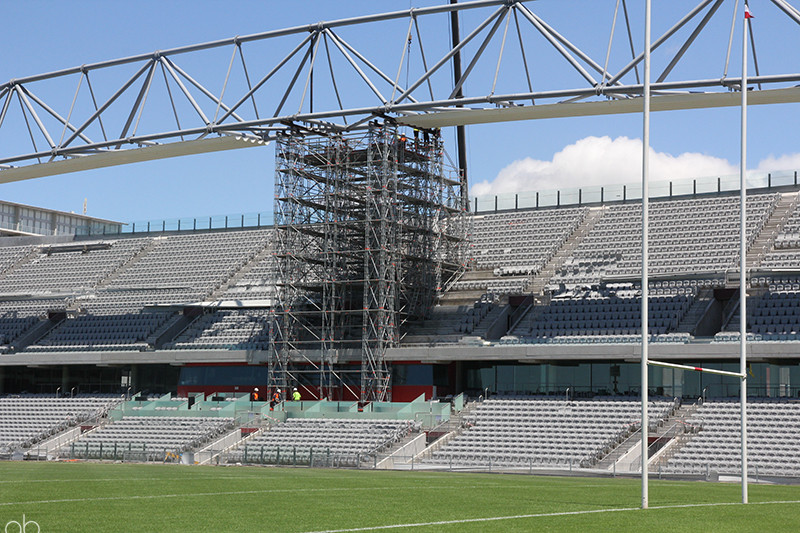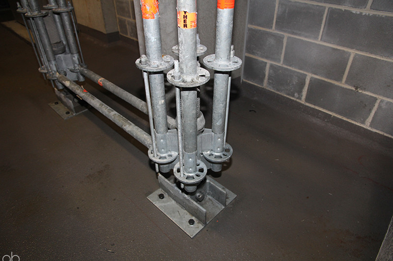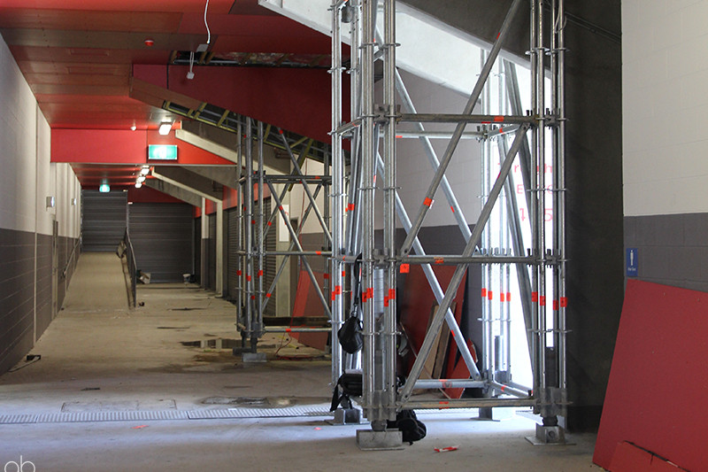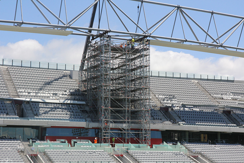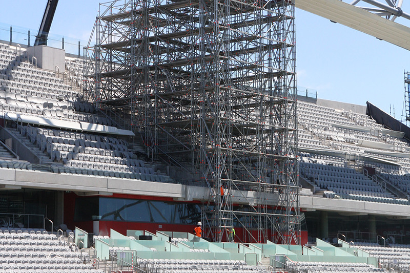 - Anchored down through the stadium levels to base slab using heavy duty push/pull props